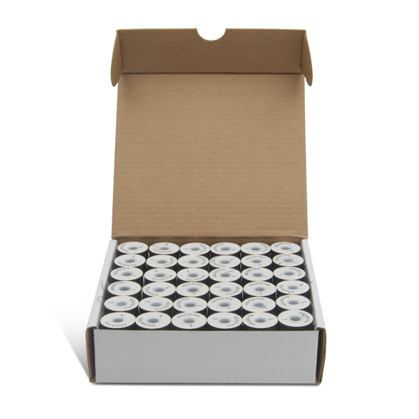 Gunold's Signature cardboard sided bobbins are designed for customers who have been searching for a bobbin that gives up nothing to name brand bobbins. This is Gunold's Signature offering that we proudly attach our name to because it features quality and run-ability while fully comparable with Coats V-15 bobbins. Like Coats L bobbins, the Gunold Signature bobbin is 100% continuous filament polyester and is durable beyond compare. This quality bobbin is one of our best selling and best rated bobbin for a reason. You owe it to your pocketbook to try and discover this name brand alternative bobbin, which we feel will inevitably be your bobbin of choice.